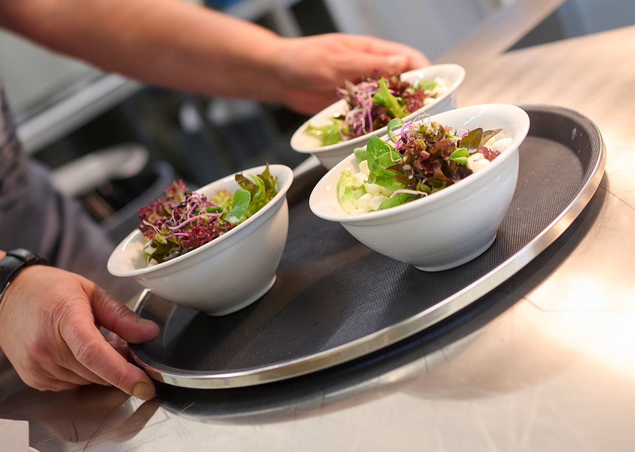 Wir wollen Ihnen nur das Beste auftischen. Deshalb arbeiten wir mit Lieferantinnen und Partnern, die unsere Werte teilen: sorgfältiger Umgang mit den Ressourcen, Nachhaltigkeit, kurze Transportwege der Lebensmittel, Frische sowie Saisonalität – und eine Zusammenarbeit auf Augenhöhe.